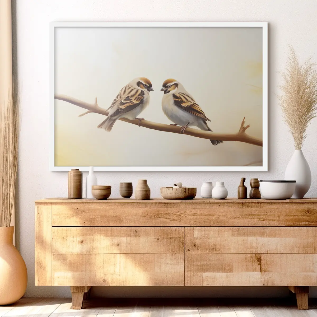 Je kunt het schilderij ophangen aan schroeven. Hiervoor leveren we bevestigingen bij onze foto's, zodat je de foto gemakkelijk kunt ophangen.