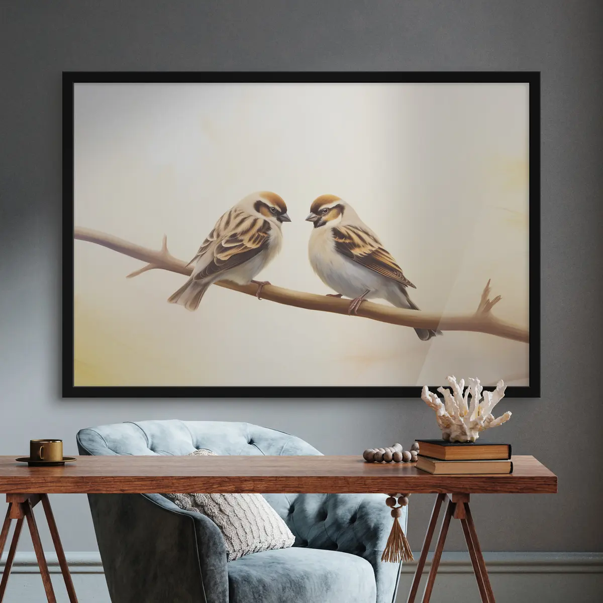 De poster bestaat uit een frame, plexiglas, geprinte afbeelding en spaanplaat achterkant. De poster kan meteen aan de muur worden gehangen dankzij de bevestigingen op de achterkant.