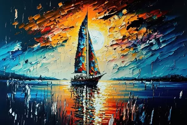 Poster Zeilen naar een levendige zonsondergang N° f38052