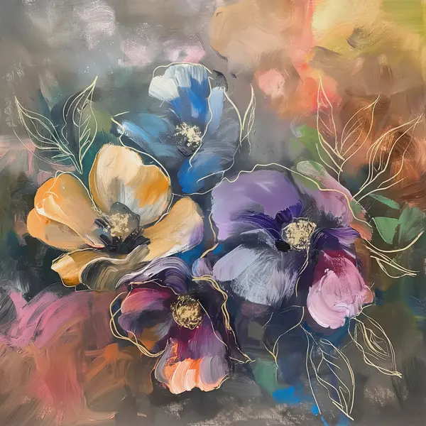 Poster Abstracte bloemen geschilderd met penseelstreken N° f38131