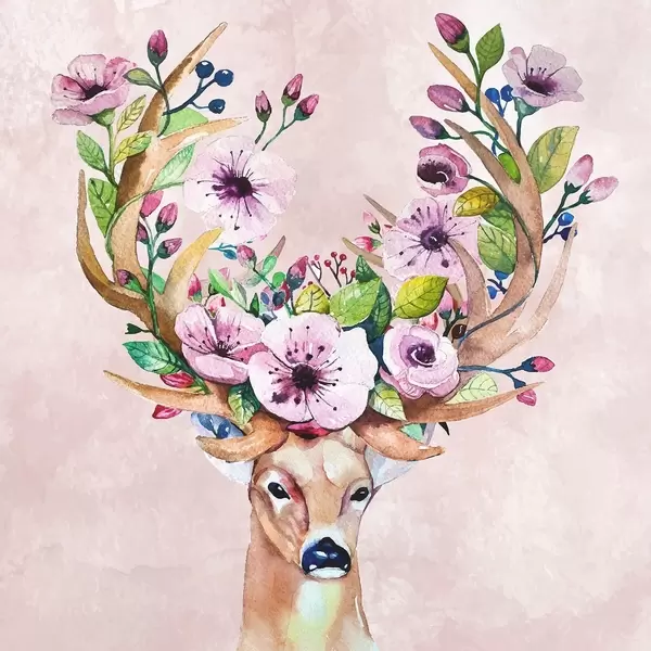 Poster Aquarel van een hert met bloemen op de horens N° f38331