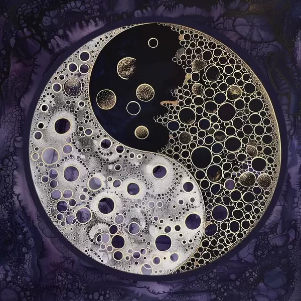 Poster Symbool van yin en yang op paarse achtergrond N° f38535