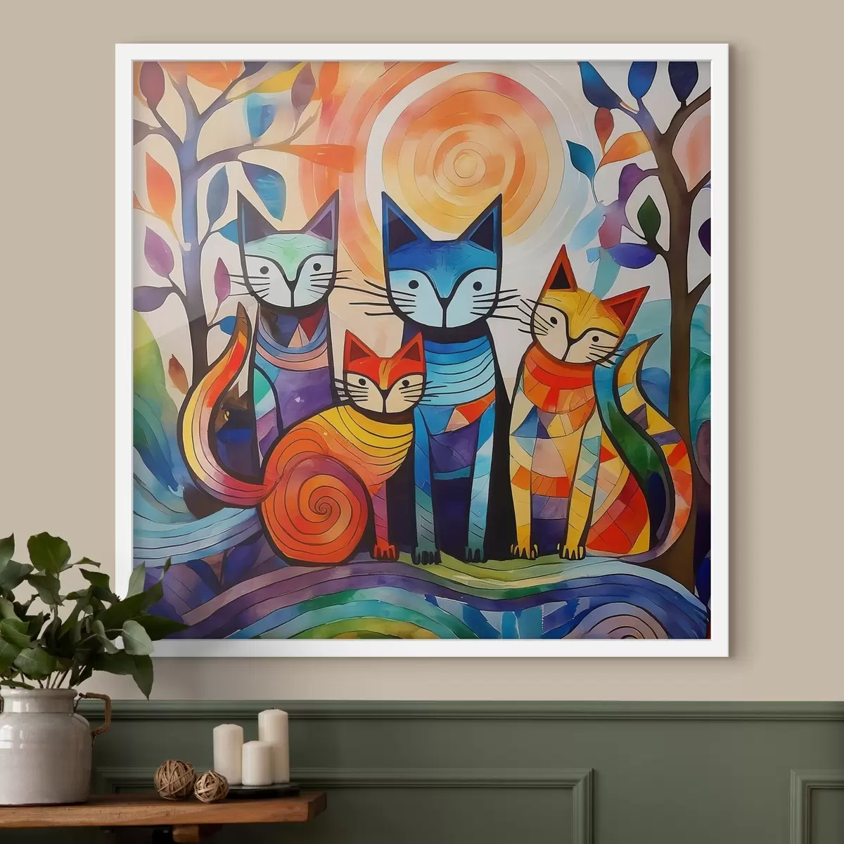 Poster Veelkleurige abstractie met interessante katten N° f38815