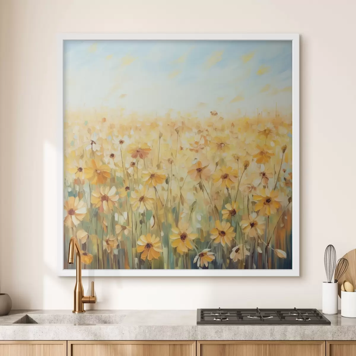 Poster Zonverlichte bloemen dansen in de wind N° f38939