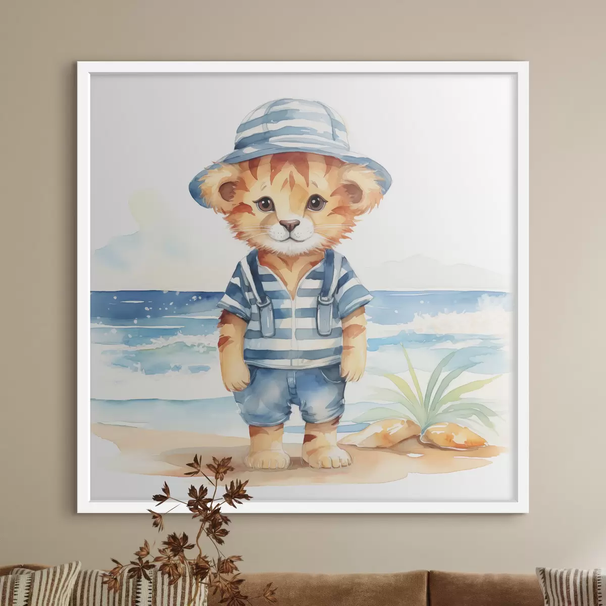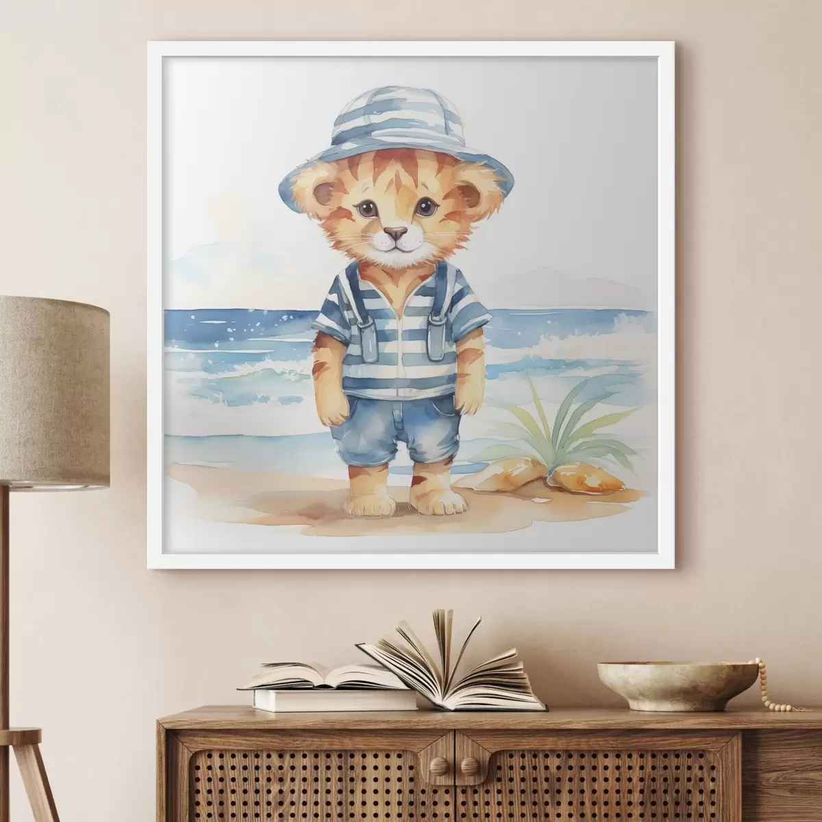 Poster Speelse tijger genietend van een stranddag N° f38944