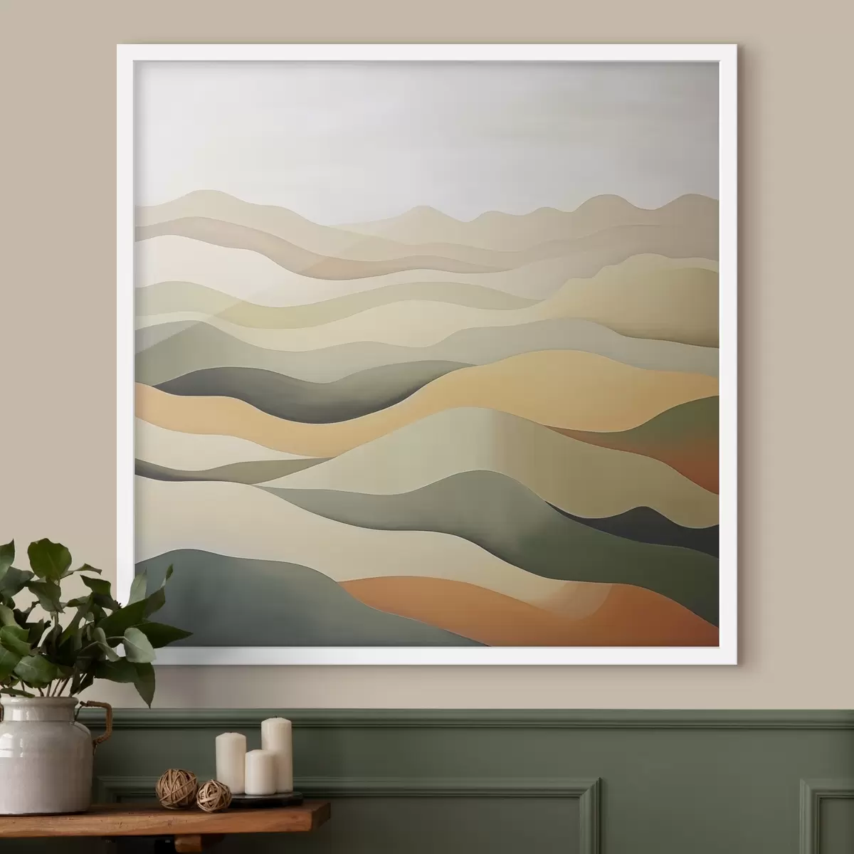 Poster Heuvels, abstract landschap, gouache, groen, oker, sepia, grijs N° f38952