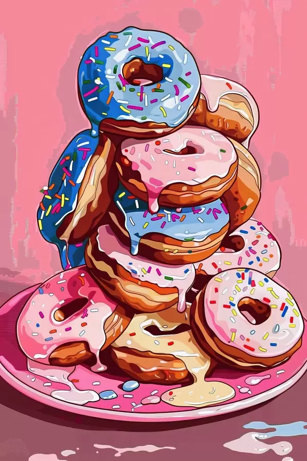 Poster Kleurrijke donuts hoog opgestapeld N° f39043