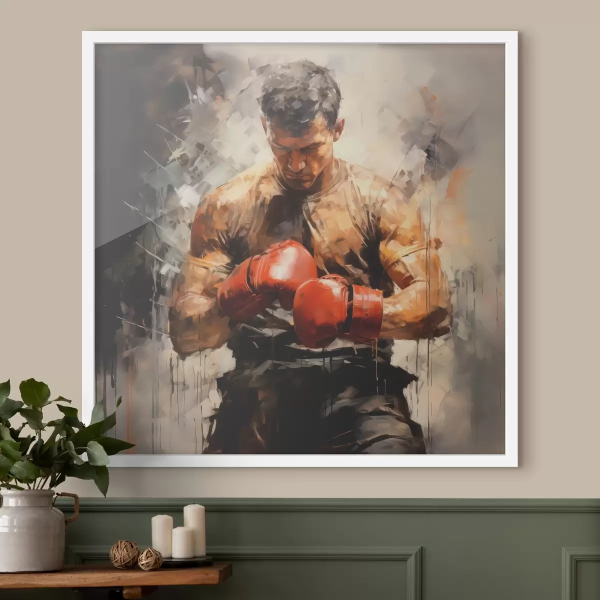 Poster Bokser in rode handschoenen olieverfschilderij N° f39180