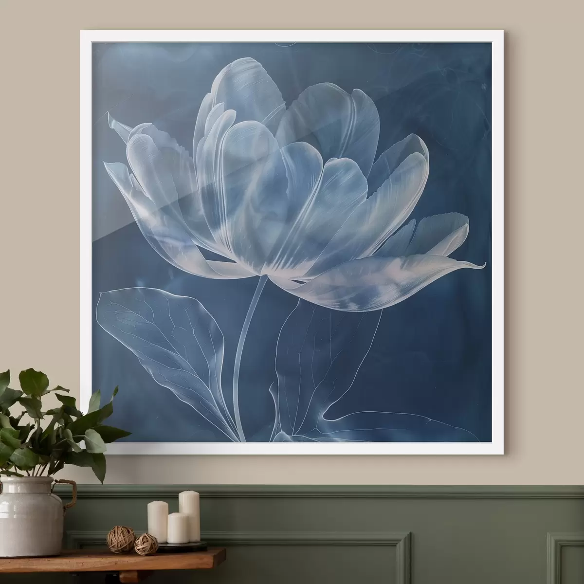 We verkopen foto's op spieraam - dat is een houten frame waarop het doek is opgespannen. Deze foto hoef je niet in te lijsten; je kunt hem direct aan de muur hangen.