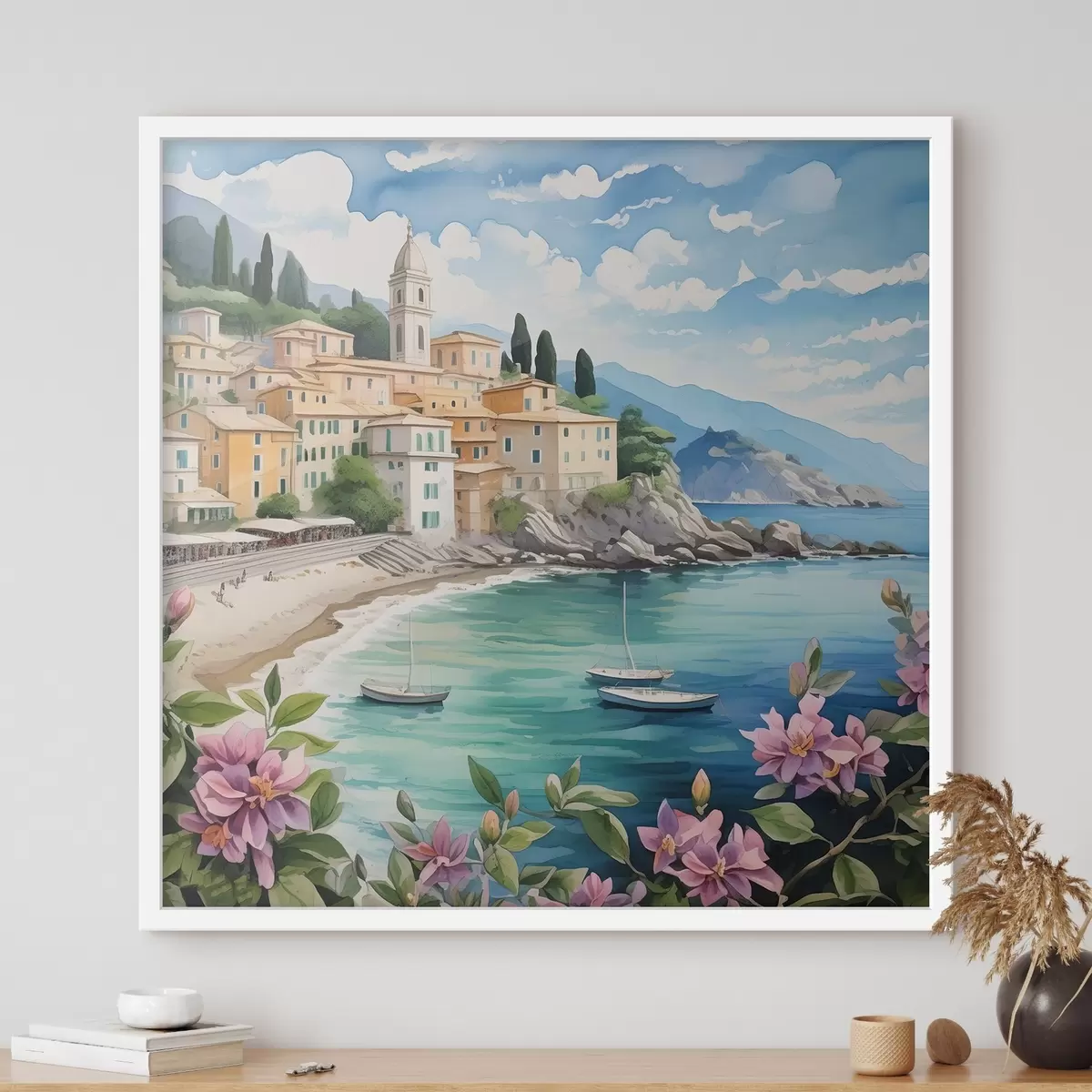 Je kunt het schilderij ophangen aan schroeven. Hiervoor leveren we bevestigingen bij onze foto's, zodat je de foto gemakkelijk kunt ophangen.
