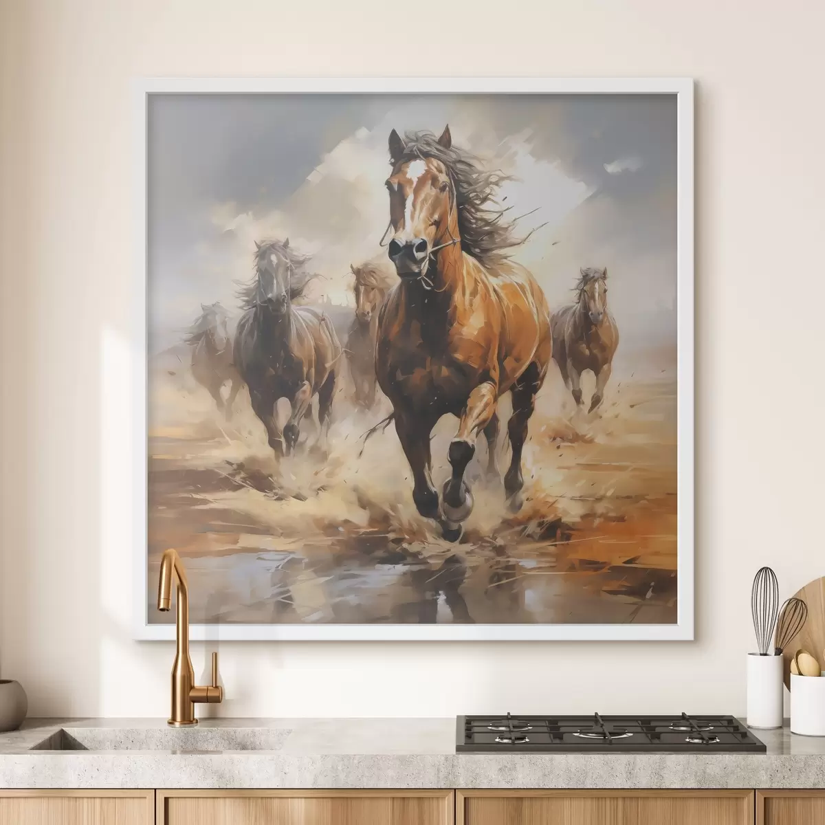 Poster Paarden in galop in de weide olieverfschilderij N° f39436