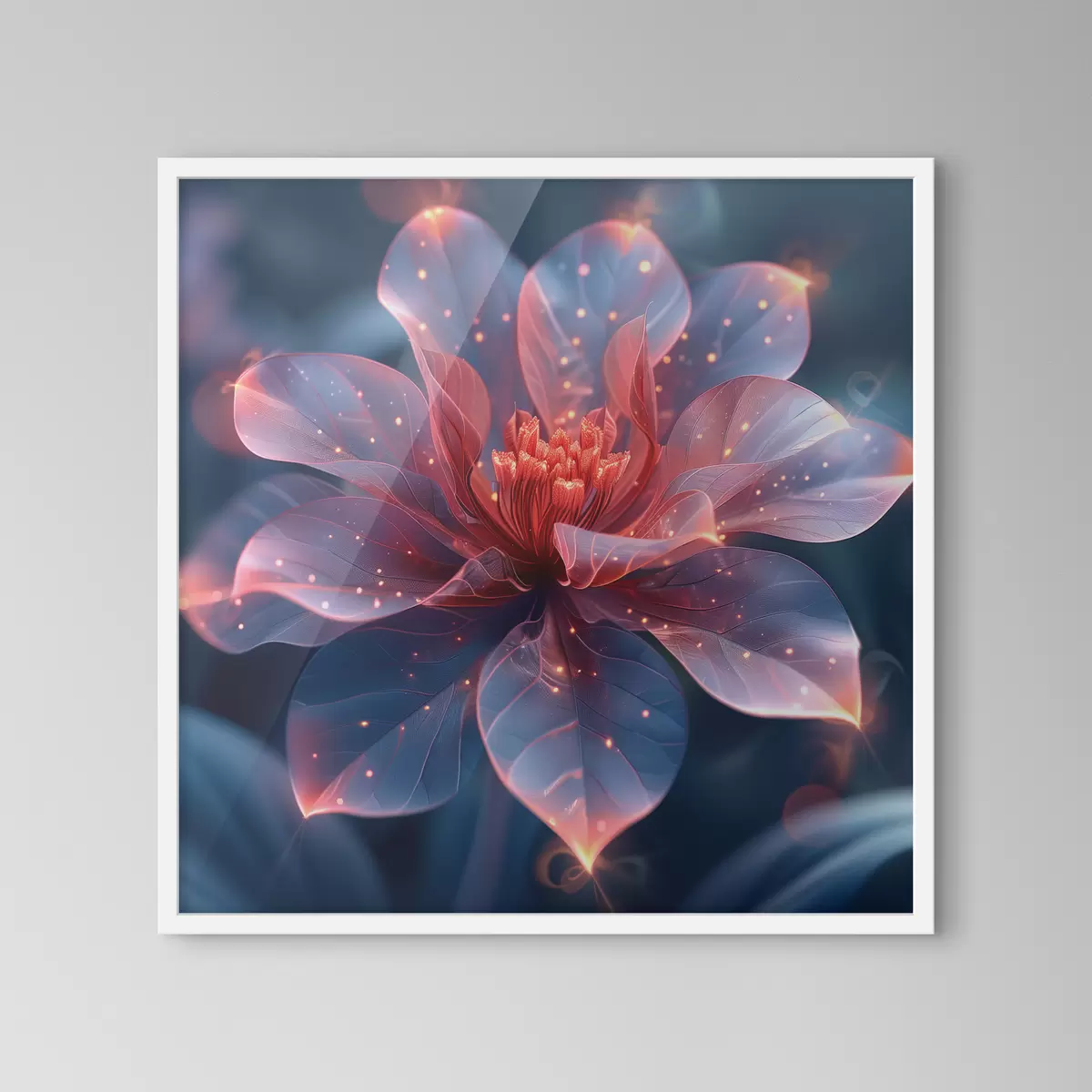 Poster Mooie grote fractal bloem in blauw en rood met gloeiende bloemblaadjes N° f39741