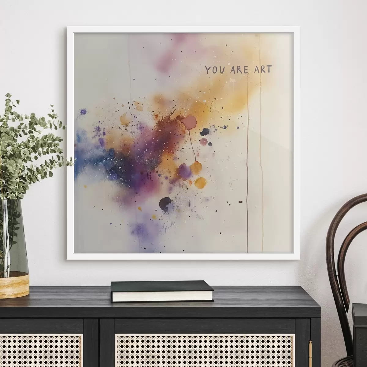 Je kunt het schilderij ophangen aan schroeven. Hiervoor leveren we bevestigingen bij onze foto's, zodat je de foto gemakkelijk kunt ophangen.