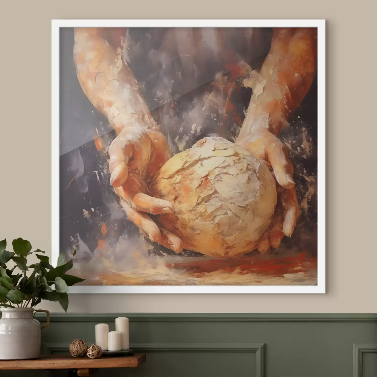 Poster Handen van de bakker die het deeg vasthouden, imitatie van een olieverfschilderij N° f40095