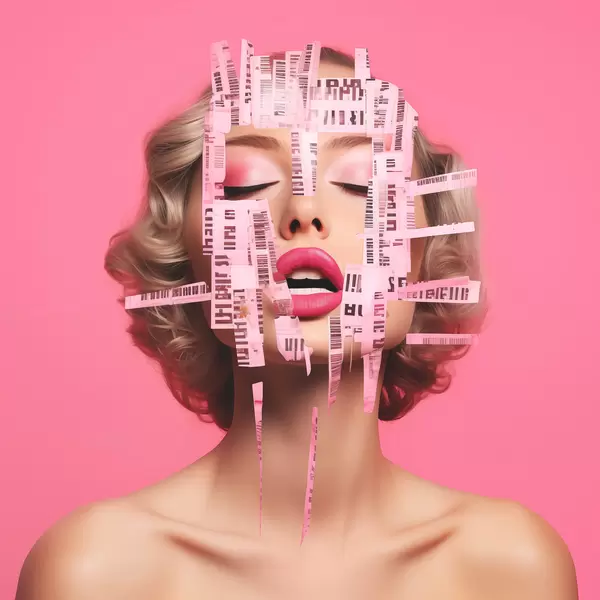 Poster Portret van een meisje bedekt met barcodes op een roze achtergrond N° f40100