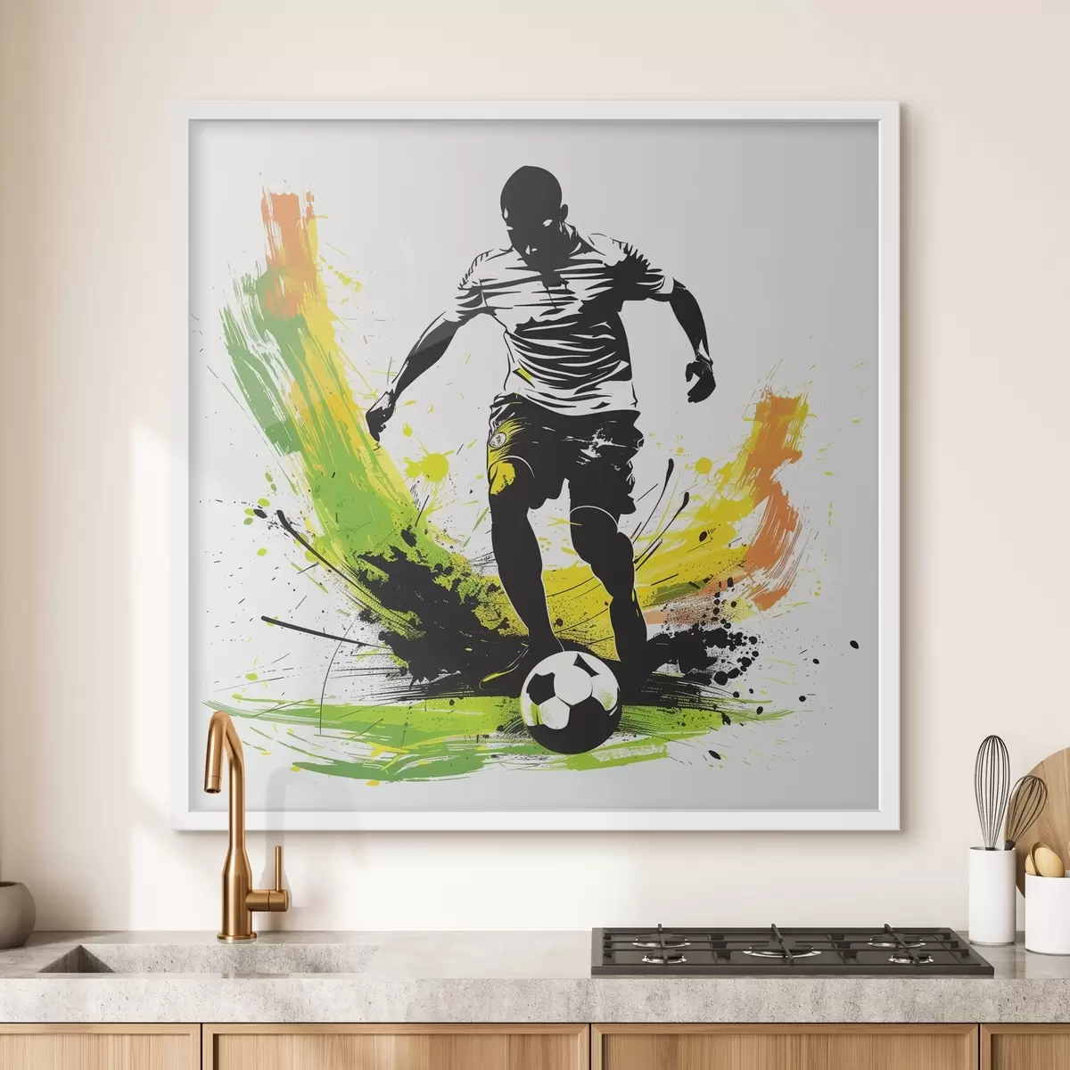 Poster Voetbalspeler tegen de achtergrond van kleurrijke vlekken N° f40381