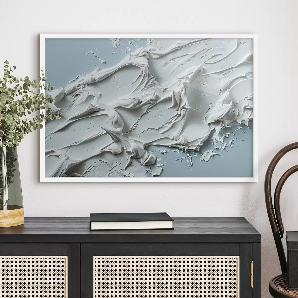 De poster bestaat uit een frame, plexiglas, geprinte afbeelding en spaanplaat achterkant. De poster kan meteen aan de muur worden gehangen dankzij de bevestigingen op de achterkant.