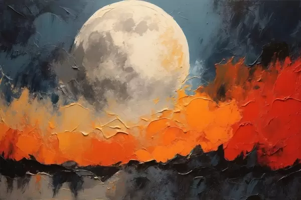 Poster Abstract olieverfschilderij met maan f41286