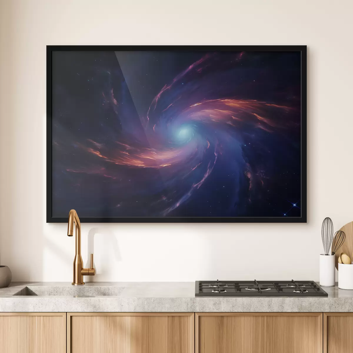 De poster bestaat uit een frame, plexiglas, geprinte afbeelding en spaanplaat achterkant. De poster kan meteen aan de muur worden gehangen dankzij de bevestigingen op de achterkant.