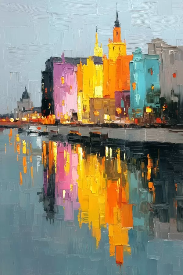 Poster Stadsverlichting: levendig landschap in impasto stijl N° f45242