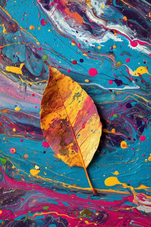 Poster Helder blad op een kleurrijke achtergrond: abstracte compositie N° f45245