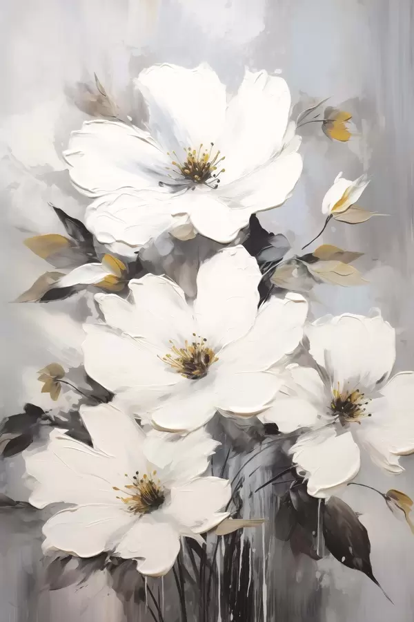 Poster Witte bloemen: volumetrisch schilderij op grijze achtergrond f45252