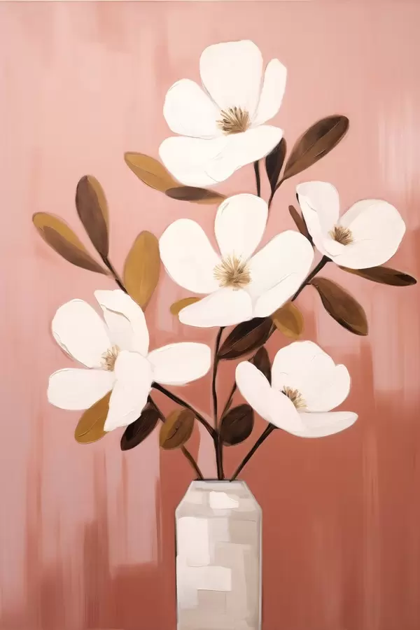 Poster Witte magnolia's in een witte vaas: minimalistisch bloemenschilderij N° f45254