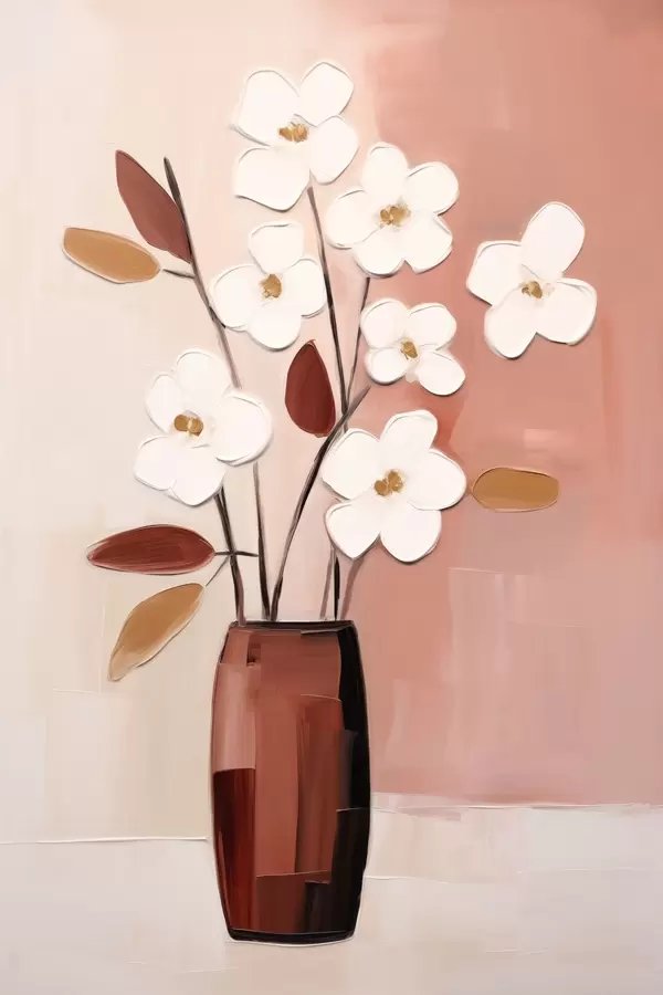Poster Witte bloemen in een donkere vaas: modern bloemenschilderij N° f45255