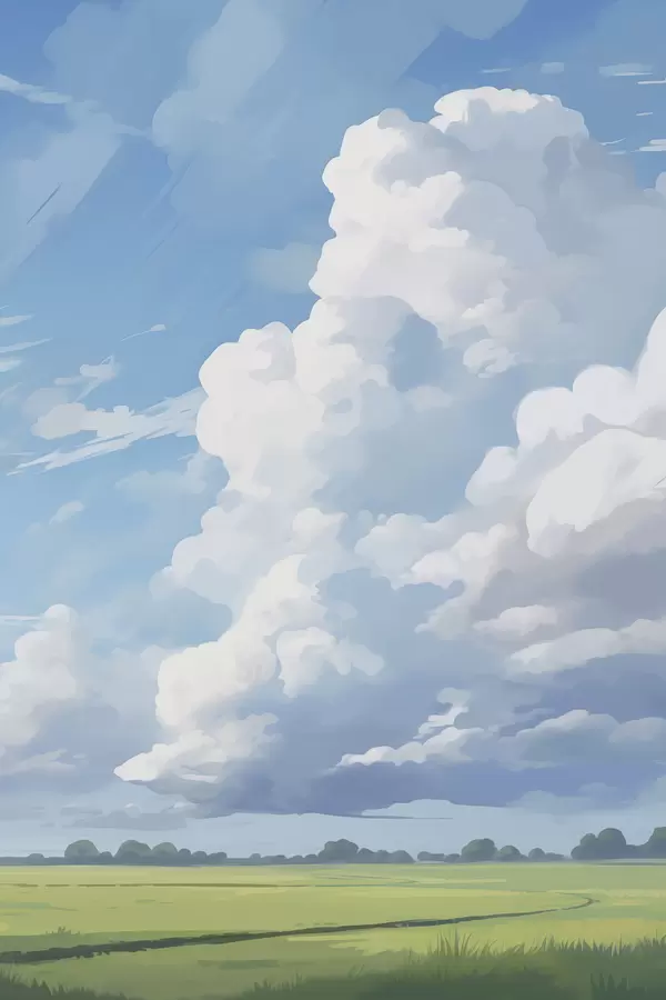 Poster Veld tegen de lucht met enorme wolken N° f45453