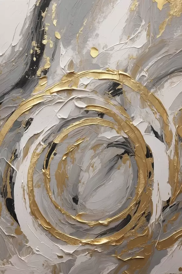 Poster Abstracte concentrische cirkels in grijstinten en wit N° f45487