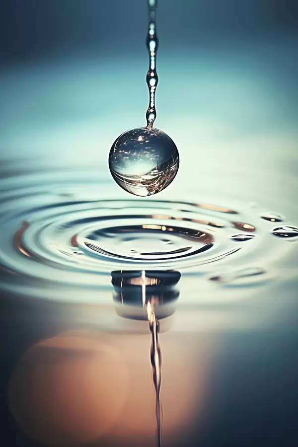 Poster Een waterdruppel die valt met lichtflitsen N° f45501