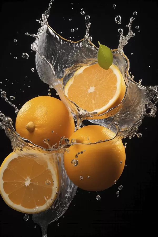 Poster Sappige sinaasappels in water spatten f45526