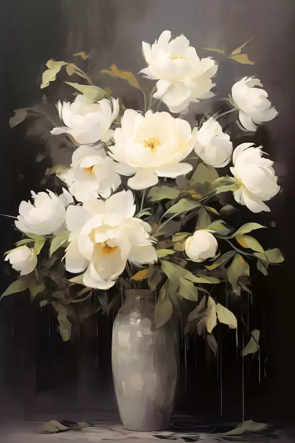 Poster Delicate pioenrozen in een vaas: bloemencompositie in de stijl van een schilderij N° f45532