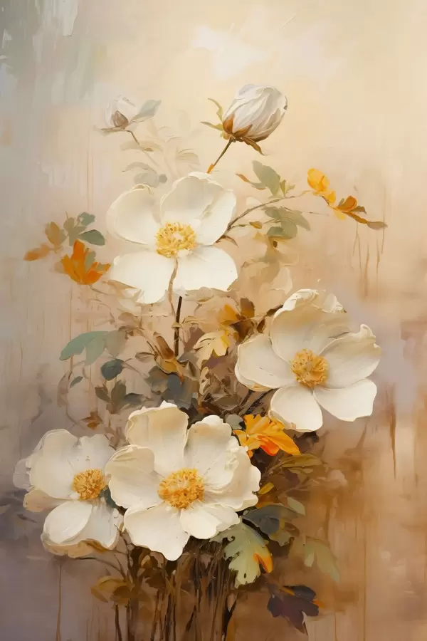 Poster Witte bloemen: schilderachtige compositie in pasteltinten N° f45533