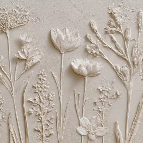Poster Abstracte compositie: bas-reliëfstijl met bloemen op een lichte achtergrond N° f45535