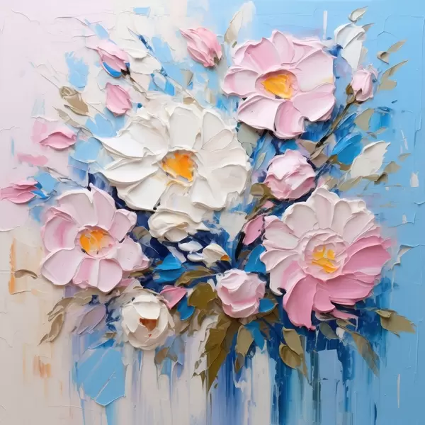 Poster Schilderachtige compositie in roze en blauwe tinten N° f45538