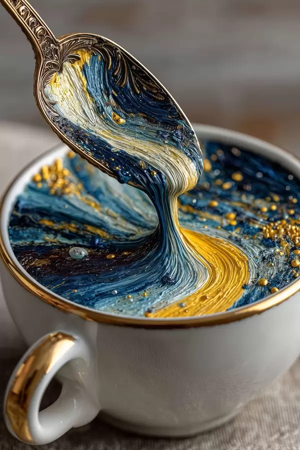 Poster Abstracte compositie: gemengde kleuren in een kopje in Van Gogh-stijl N° f45545