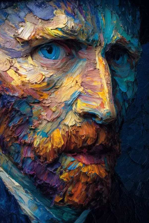 Poster Decoratief Van Gogh-portret: reliëfschilderij in blauwe en oranje tinten N° f45546