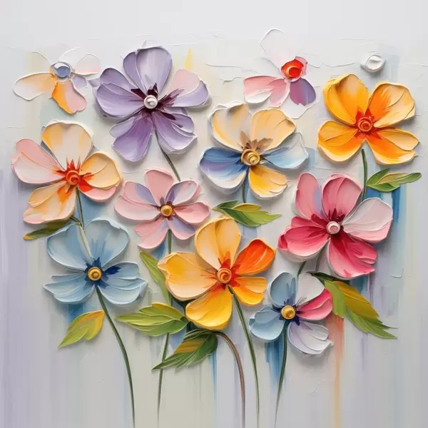 Poster Bloemstilleven: veelkleurige bloemen in impasto techniek N° f45598