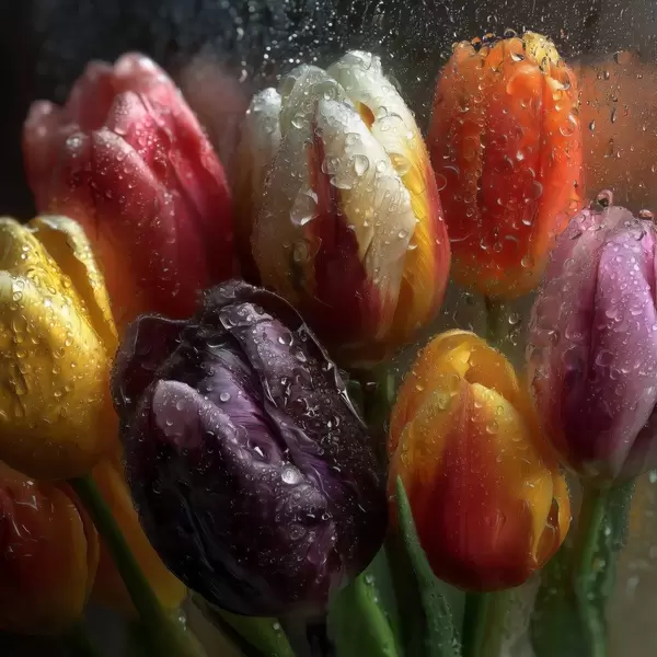 Poster Tulpen in de regen: heldere kleuren N° f45642