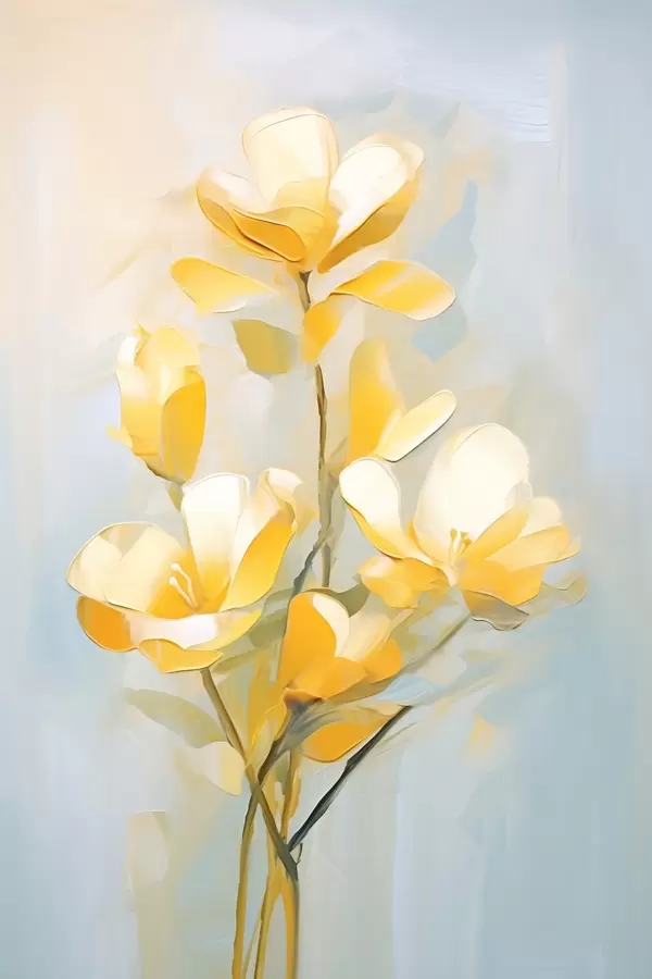 Poster Delicate gele bloemen in olieverfschilderijstijl N° f45651