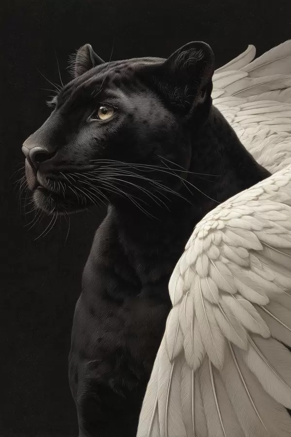 Poster Zwarte panter met vleugels in fantasiestijl N° f45653