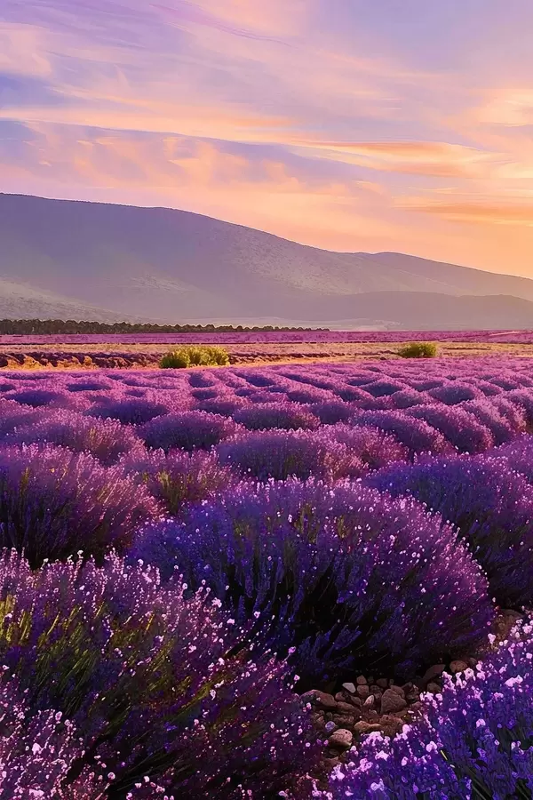 Poster Lavendelvelden tegen de achtergrond van bergen N° f45662