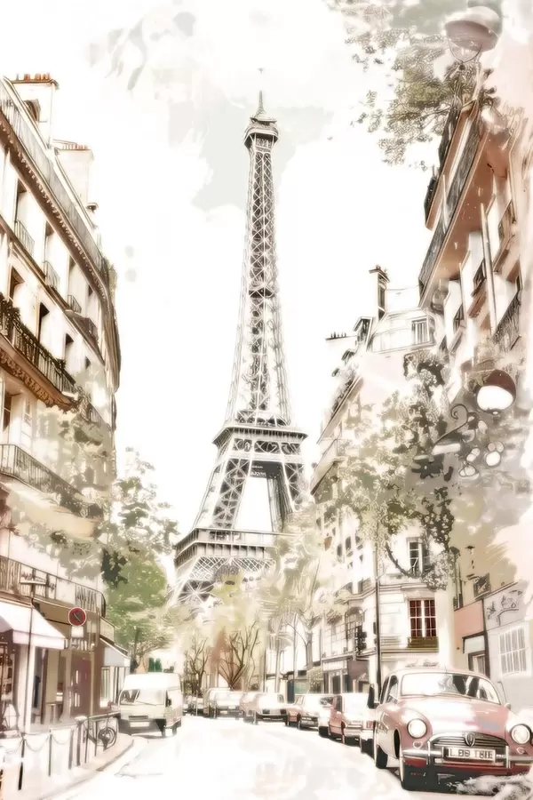Poster Afbeelding van Parijs, imitatie van verf f45668