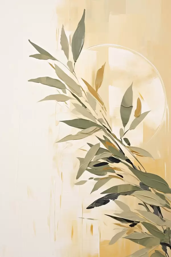 Poster Botanische tak met groene bladeren op een warme achtergrond N° f45690