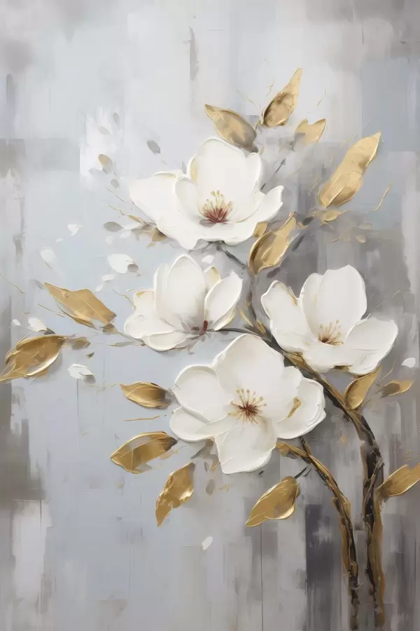 Poster Tak met witte bloemen en geeloranje bladeren N° f45692