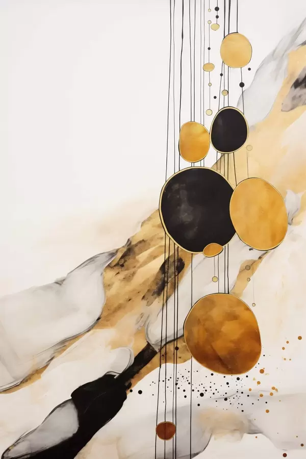 Poster Abstracte oranje en zwarte cirkels op een lichte achtergrond f45693