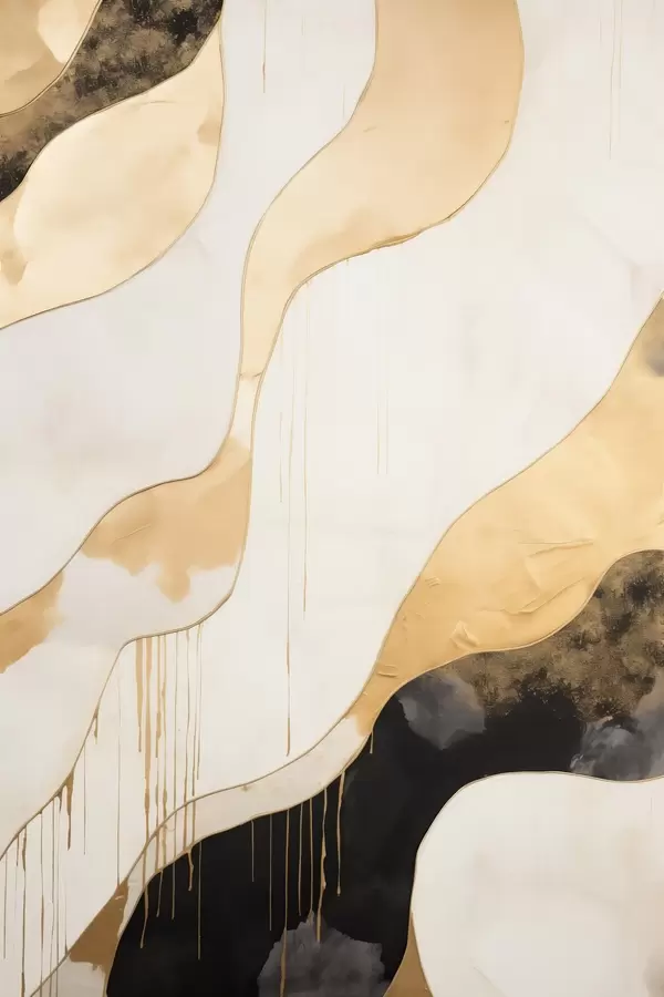Poster Abstracte oranje en zwarte golvende lijnen N° f45694