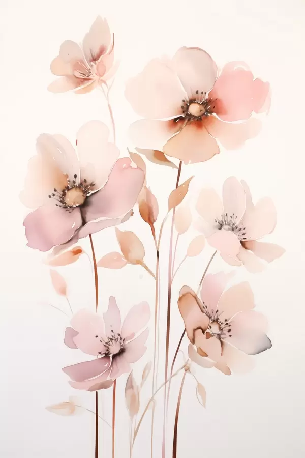 Poster Aquarelroze bloemen op dunne stelen N° f45701