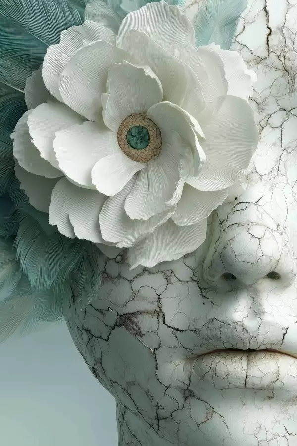 Poster marmeren gezicht van een meisje met een bloem f45709